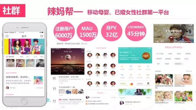 辣媽幫創(chuàng)立于2012年5月,僅用了4年時間,便擁有了6000萬的用戶。辣媽幫致力于打造全新母嬰生態(tài)鏈,旗下四大應用“孕期伴侶-辣媽幫-荷花親子-辣媽商城”涵蓋了女性“育兒-生活-情感-消費”四大領(lǐng)域。